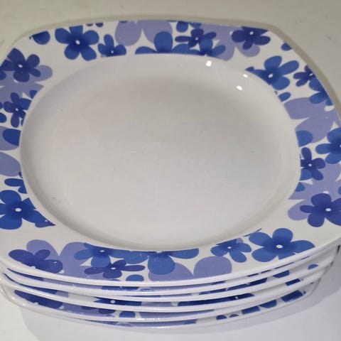 Posliinilautaset ja leipälautaset. Kahdessa lautasilla on vikoja (kuva 6). Yht. 5e