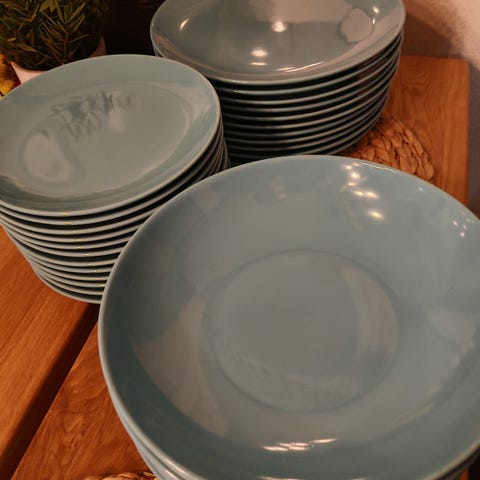 Ikean vaalean beigejä lautasia. 4+4+3 kpl. Isojen pinnoissa hieman ruokailuvälineistä tulleita jälkiä, jotka varmasti saa putsattuakin. Ehjiä kaikki.