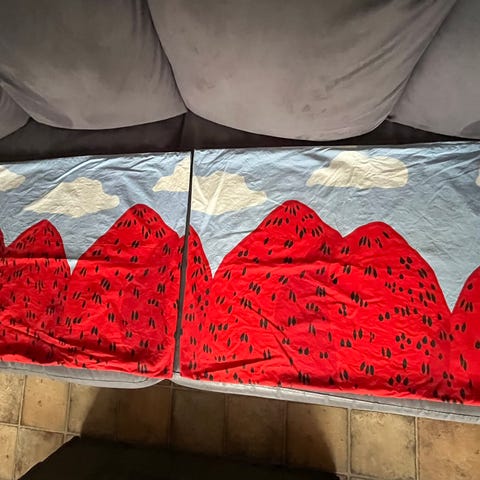 Kaksi uudenveroisia Marimekko Veljekset tyynyliinaa / tyynynpäällistä. Käytetty muutamia kertoja, Uudenveroiset!
