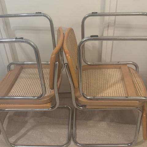 Myydään neljän Venetsia-tyylisen rottinkituolin setti.
