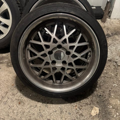Hyväkuntoinen bemarin rengas ja vanne sarja pintaa noin 7 mm.