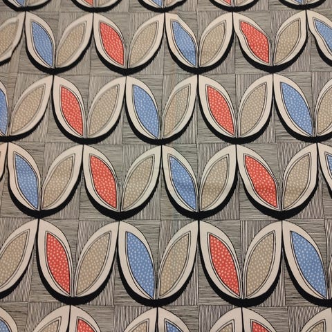 Uusi retrotyylinen paksuhko puuvillakangas, leveys 115 cm ja pituus n. 530 cm. Voit ostaa lyhyempänäkin n. 265 cm hintaan 12 €.
