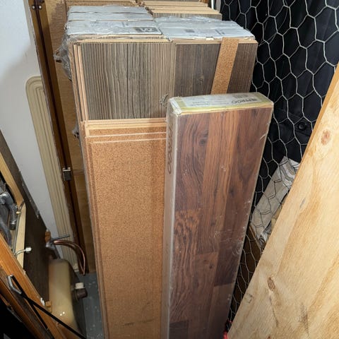 Laminaatti myydään tarvittaessa erikseen (23,9 m2). Muut tuotteet pakettina laminaatin oston yhteydessä. Nouto Tuusulasta, ei postitusta. OVH paketille n.1500€.