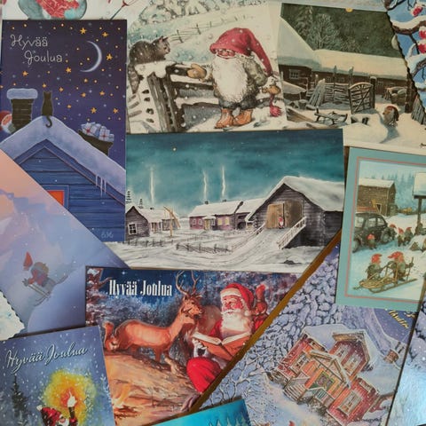 Joulukortteja tontuista vuosikymmenien takaa