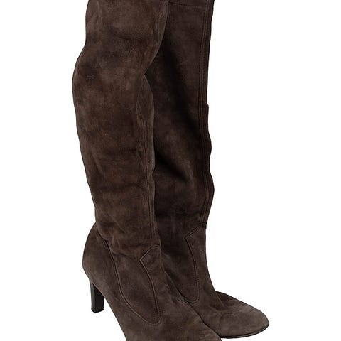 Tummanruskeat Peter Kaiser -saappaat on valmistettu pehmeästä mokkanahasta, ja niissä on nilkan yläpuolelle ulottuva varsi. Saappaissa on sivuvetoketju pukemisen helpottamiseksi sekä kaksi säädettävää solkihihnaa varren yläosassa. Kantakorko on tukeva.Kengän koko on 4 1/2.Saappaissa on täyspitkä sivuvetoketju.Valmistaja: PETER KAISERVäri: tummanruskeaKoron korkeus: 6 - 7 cmMateriaali: mokkanahka