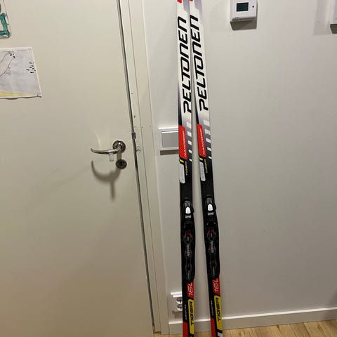 Peltonen Racer 160cm nanogrip pitopohjasukset, Salomonin SNS-siteillä.
