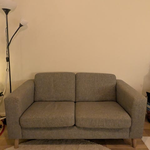 Erittäin hyvässä kunnossa 2-istuttava sohva. Tyynyt irrotettavissa ja kankaat pestävissä. Ei tahroja eikä nukkaantumista. Korkeus 80cm merkitty jalkojen kanssa. Vain nouto.