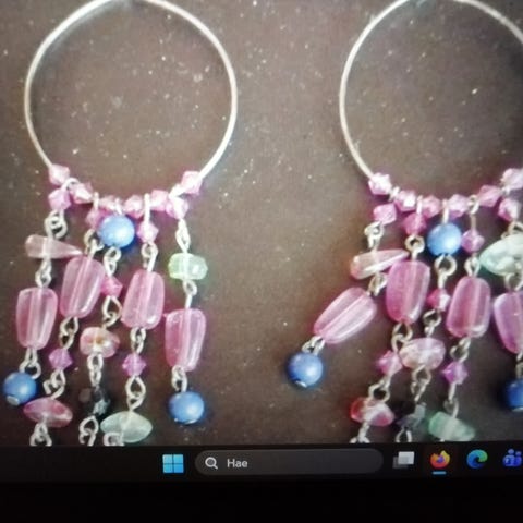 Muoviset mustat kolmiot ja sinapin väriset korvikset. Sopivat hyvin meyalliallergisille. Nämä yhdessä 6e.