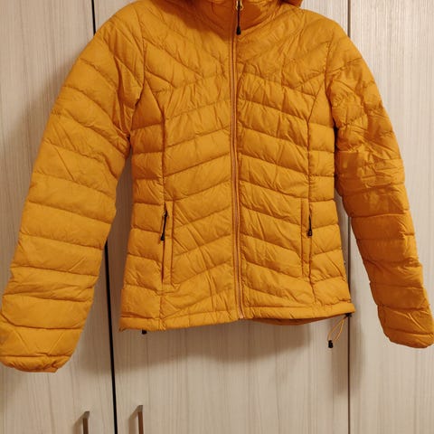 Halti naisten kevytuntuvatakki 34. 90% untuvaa. Kiinteä huppu. Kainaloväli n.46cm.