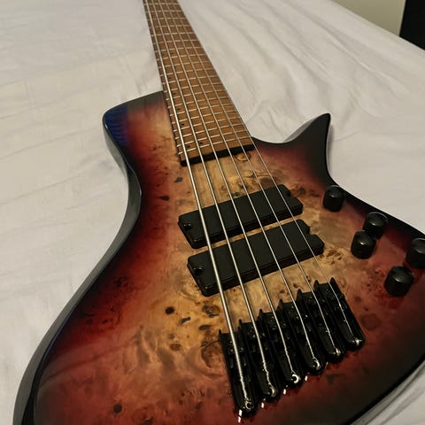 Häikäisevän upea 2006 Saksassa valmistunut Sandberg Custom 4 sähköbasso alkuperäisellä Sandbergin gig bagilla. Basso on kaikin puolin hyvässä kunnossa ja tekniikka toimii niinkuin pitääkin. 2 Delano- mikrofonia (mikkien puolituksella), mahonkibody (Macassar top), vaahterakaula ja ruusupuuotelauta. Vain kevyttä käytön jälkeä ja kulumaa näkyvissä ja säädöt kohdillaan.