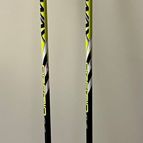 Pituus 135cm. Kevyet sauvat luisteluhiihtoon, miksei pertsaankin. En nyt muista paljonko näissä sauvoissa oli hiilikuitua, mutta kevyet ja jäykät laatusauvat.