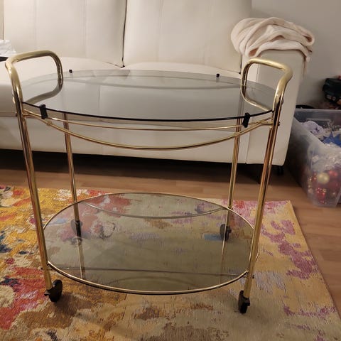 Kärry vaunu sohvapöytä olohuoneenpöytä sivupöytä lasipöytä retro
