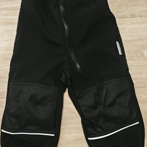 Yhdellä lapsella käytetyt Jonathan korkeamman malliset softshell housut henkseleillä, koko 92cm. Parhaat housut, kun selkä ei jää missään vaiheessa paljaaksi ja voi hyvin käyttää esimerkiksi keväällä verkkatakin kanssa. Polvissa hieman käytönjälkiä. Jalkalenksut ehjät mutta pinttynyttä likaa. Pyyhitty kostealla viimeisten käyttökertojen jälkeen.
