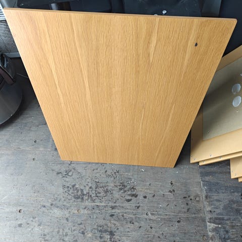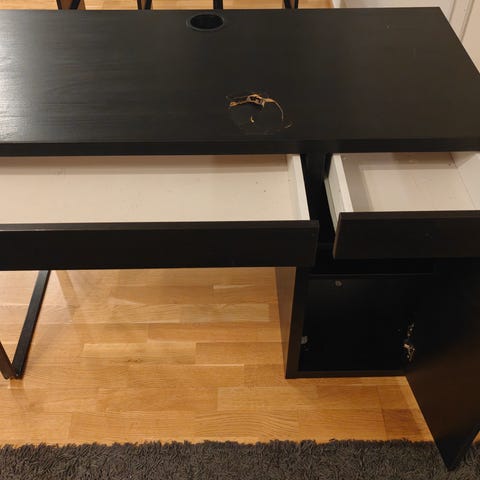 Kevyt, helposti siirrettävä ja taitettavissa oleva pöytä, jonka koko on 65 cm korkeus, 48 cm leveys, 36 cm pituus. Valmistaja ja valmistuspuu eivät ole selvillä. Sen pinnoissa näkyy joitain käytön jälkiä. Pöydän saa hakea 11 eurolla.