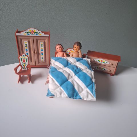 Erikoispuusepän tekemät sohva, nojatuolit ja pöytä lasten leikkeihin. pöydän pinta n. 22 cm *17 cm ja korkeus 10 cm, sohvan pituus vähän alle 30 cm ja korkeus takaa 17 cm samoin tuolin korkeus takaa 17 cm. Eivät siis ole nukkekotiin vaan kotileikkeihin. Maali lohkeillut osin ja muutama sen ajan tarra liimattu. Yht. 25 e. Voin lähettää, postikulut ostajalle