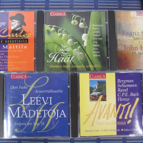Myydään klassisenmusiikin cd-levyjä 2,00 euroa kappale. Kaikki cd:t kuunneltu ja todettu toimiviksi. Cd:ssä voi olla naarmuja & kansipapereissa jälkiä/omistuskirjoituksia, mutta cd-kotelot ovat ehjät. Postituskulut ostajalle ja noutokin sovittavissa.