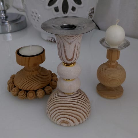 Aarikka vanha kynttilänjalka messinki ja lasi