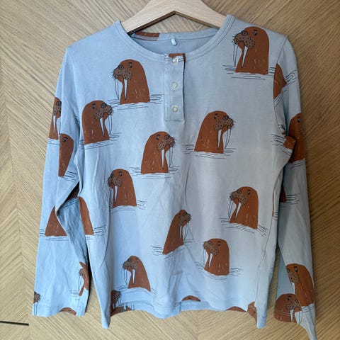 Ohut jääkarhupaita, kokoa 116-122, vastaa enemmän kokoa 116. Väri tummunut, pesuhaitua pinnassa.