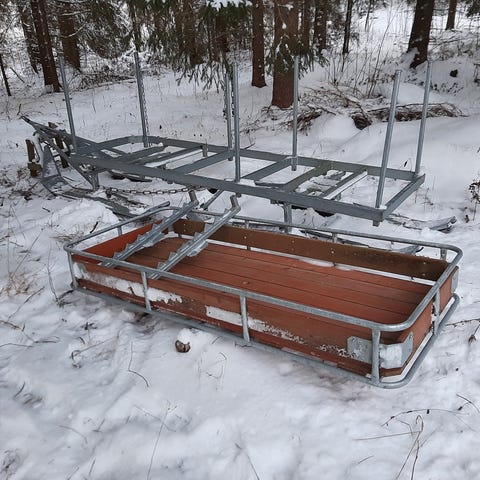 Ultratecin laadukas pariteki. Tällä pystyy vetämään isoa puukuormia ja lastaaminen yms on mietitty järkevästi. Käyttämällä vain toista rekeä, voit käyttää juontona myös.