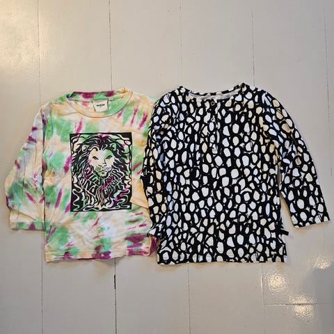 Newbie sienipaita. Tässä pieni tahra edessä, en ole koittanut poistaa. Koko 110-116,