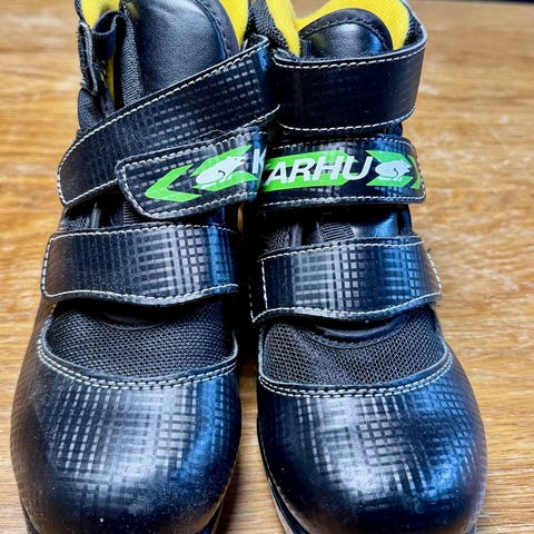 Karhun NNN-monot koko 34, sisäpohjallisen mitta 22,8cm. Elämää nähneet, mutta ajavat asiansa, toisen monon pinnassa pieni viilto. Nouto Kalevasta tai Toridiili.