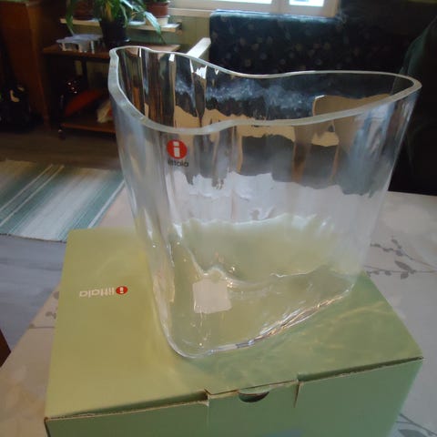 Iittala. Bumerangi. Maljakko numeroidut vuodelta 2021. Paketissa. Kirkas 300 euroa. Tumma harmaa 350 euroa. Korkeus 14 cm. Uusia paketissa