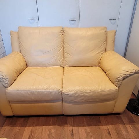 Myydään kahden istuttava Natuzzi nahkasohva valkoinen