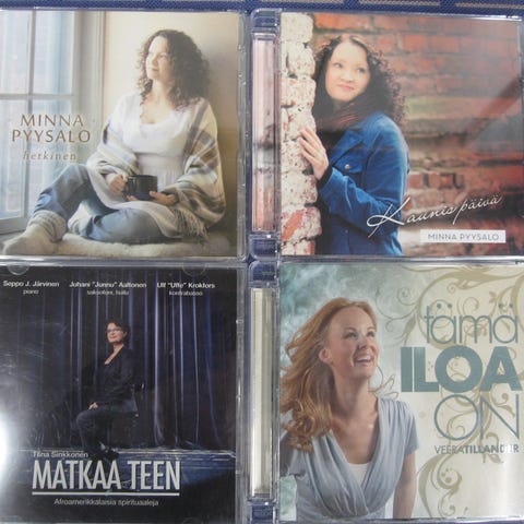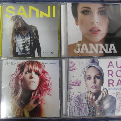 Myydään kotimaisten artistien cd-levyjä 3,00 euroa kappale. Kaikki cd:t kuunneltu ja todettu toimiviksi. Cd:ssä voi olla naarmuja & kansipapereissa jälkiä/omistuskirjoituksia, mutta cd-kotelot ovat ehjät. Postituskulut ostajalle ja noutokin sovittavissa.