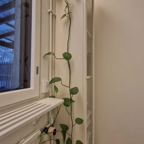 Myydään kuvan kultaköynnös (ylähyllyllä) ruukkuineen. En osaa ottaa kantaa kasvin kuntoon, mutta ainakin se tekee uusia lehtiä ja näyttää voivan hyvin. Ei hyönteisiä. Sekä kasvi että ruukku on ostettu Järvenpään Kukkatalosta. Savuton ja eläimetön talous.