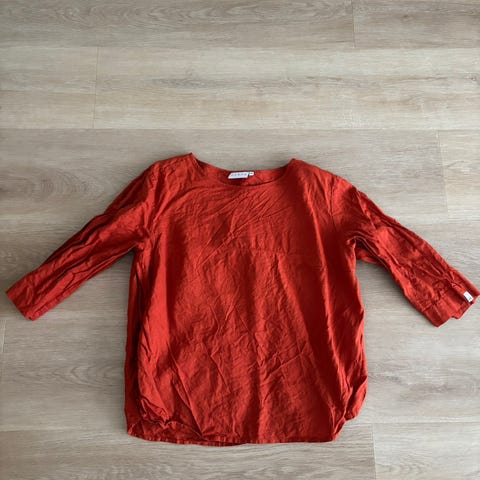 Aivan ihana ja todella laadukas 3/4-hihainen paita. Väri viininpunainen/tummanpunainen/merlot. Materiaali on 100% pellavaa, joten kangas ei jousta. Mielestäni sopii parhaiten XS-S -kokoiselle. Erittäin hyvässä kunnossa.