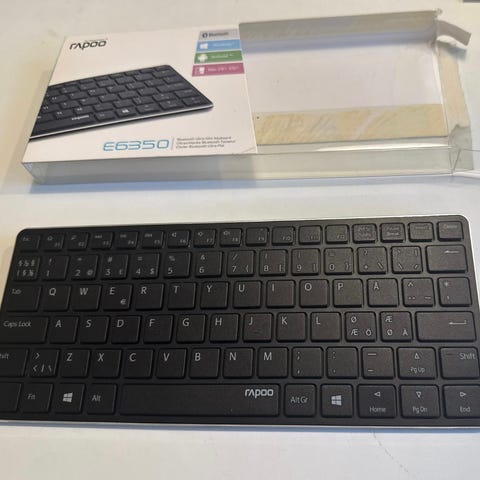 Rapoo langaton näppäimistö mustassa värissä. Näppäimistössä ei ole usb-lähetintä. Näppäimisto toimii esim tabletin kanssa BT:llä. Takana kahdelle AAA-paristolle paikat ja on/off näppäin. Minulla poiminut loistavasti akuilla, joita on voinut ekologisemmin ladata.