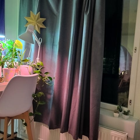 Jyskin puolipimentävä verho beige 1 kpl. Ollut käytössä yhden kesän.