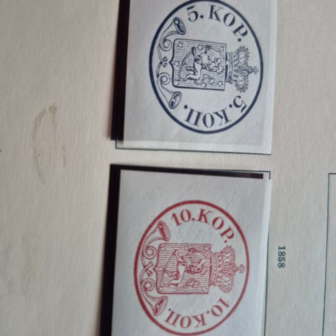 Kuvassa on Suomen ensimmäisiä postimerkkejä, niin sanottu soikiomerkki, joka julkaistiin vuonna 1856.