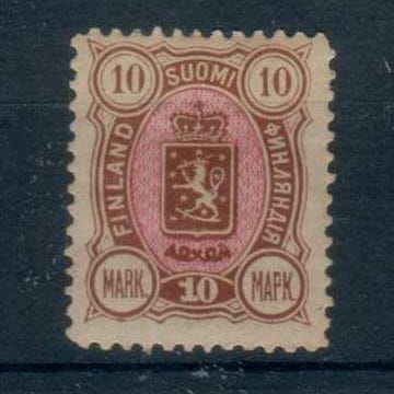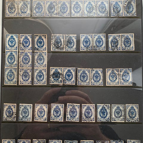 Kuvassa on Suomen vuoden 1866 8 ja 10 pennin postimerkkiä.