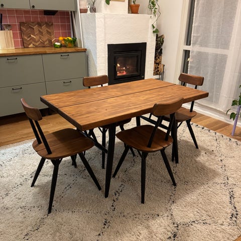 Hakusanat: pöydät, ruokapöytä, ruokatuoli, ruskea, musta, huonekalu, huonekalut, tapiovaara, design huonekalut, Tuoli, Valmistaja, design, pohjoismainen minimalismi, suomalainen, käytetyt huonekalut, tuolit, laukaan puu, puu, puinen, pöytä