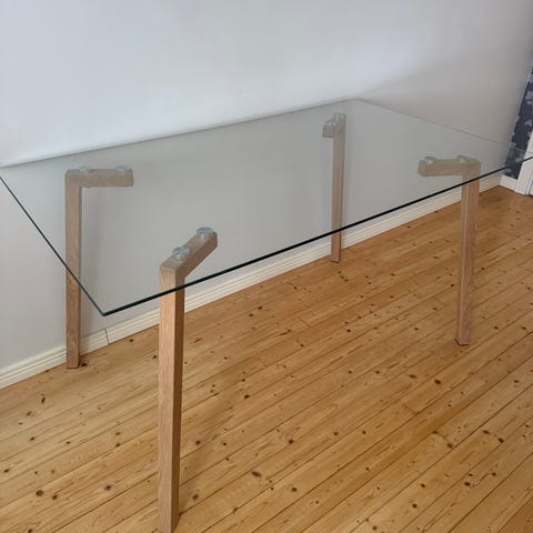 Lasinen pöytä jossa kuviointia,tuo hienon yksityiskohdan pöytään. Hyvä kunto lasipinta ehjä ja ei naarmuja.
