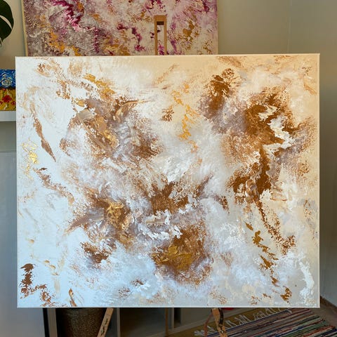 Koko 120 x 100 x 4cm. Maalattu kanvakselle akryylimaaleilla. Laadukas teos, ripustusvalmis ja signeerattu. Takana perinteinen rautalanka kiinnike, helppo ripustaa. Teoksessa on paljon yksityiskohtia ja kerroksia, voimallinen energisoiva teos. Käytetty korkealaatuisia materiaaleja. Teos on vielä paremman näköinen livenä. Kaunis massiivinen 4cm syvä kanvas on arvokkaan näköinen. Teen myös tilaustöitä. Tilaustöiden hinnat menee koon mukaan ja ovat yleensä + 20-40e lisää täällä listattuihin hintoihin verrattuna, eri tyyleillä hieman eri hinta. Kysy lisää. Lisää erilaisia teoksiani myynnissä täällä ja esillä myös instagramissa tilillä heidiabstractart. Kannattaa ottaa insta tili seurantaan, uusia teoksia valmistuu jatkuvasti. Postitus sopii myös matkahuollon taulukuljetuksena (35,90e). Lisäkuvia/videota saa pyytämällä tai poikkea katsomaan. Myynnissä myös muualla.