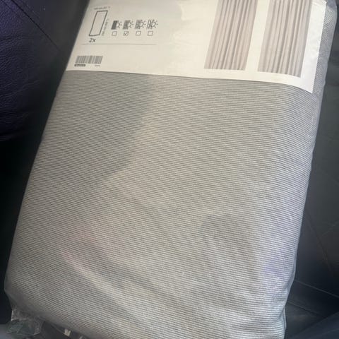 Verho on täysin uusi. Laitoin sen paikalleen vain kuvaa varten. Laskokset on tehty huolellisesti ja tasaisesti, minkä ansiosta verho näyttää siistiltä sekä auki että kiinni ollessaan. Verhon leveys ilman laskoksia on 4,5 metriä.