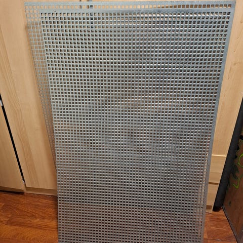 Reikä 5mm ja välit 10mm. Paksuua 1.5mm. Toisesta sivusta leikattu pala ja ja yhdellä sivulla vekki n. 10cm laidasta. Muuten hyvässä kunnossa. Vain nouto vantaan rajakylästä.