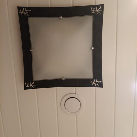 Kaunis lasikuvullinen plafondi. Kahdella polttimolla. Polttimon kanta E14. Leveys 30cm, korkeus 15cm.