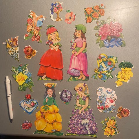 Vanhat kukkakiiltokuvat myynnissä. Pääasiassa siistejä. Reunimmaisissa lehdissä/kukissa on taitoksia. Pk 2,75€