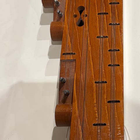 Puurungolla oleva kirkasääninen lyömäsoitin, puunuijassa reuna, joka vaimentaa äänen (Kirjokanta-liikkeestä) kielet GAHCDEFGAHCDEFC ja GisB CisDis FisGisB CisDis Fis