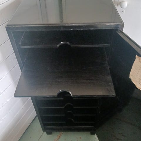 Hieno vanha mahonkinen nuottikaappi. Korkeus 100 cm, leveys 48 cm, syvyys 40 cm.