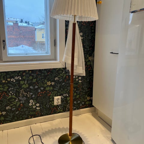 Valkoinen jalkalamppu, siistikuntoinen