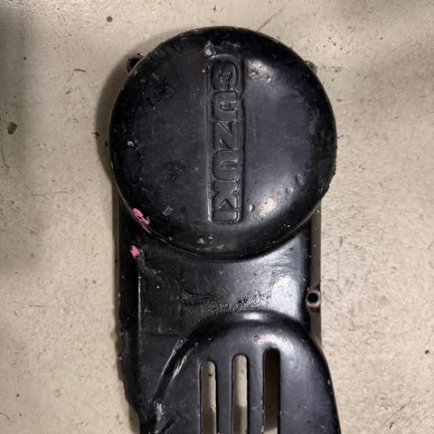 Hyväkuntoinen suzuki pv magneetto. Kierteet ulosvetimelle ehjät, kiilaura ehjä ja magneetit ehjät myös.