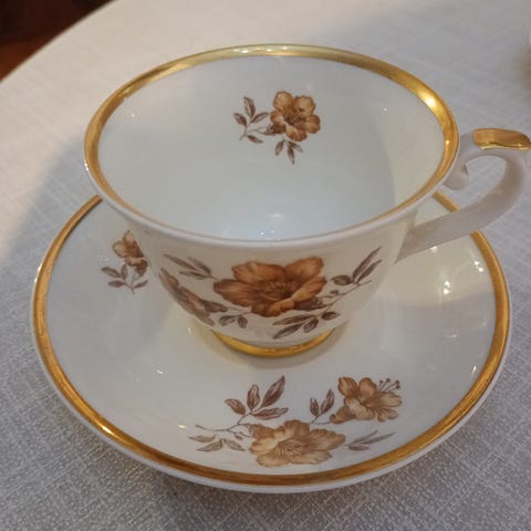 4 kpl kahvikupit, aluslautaset ja pullalutaset. Kunto erittäin hyvä.