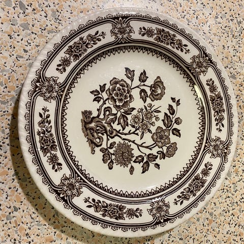 Lautaset sinivalkoinen posliini, Staffordshire.