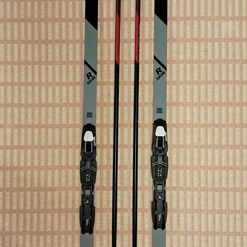 Lasten Suomupohjalliset sukset, jossa pitoalueella jyrsitty hakkuu. Hinta sisältää Tour step siteet (49€).