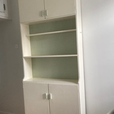 Kalusteessa tyylikkäästi elämän jälkiä eikä ole maalattu tuhanteen kertaan joten halutessasi voit kunnostaa kaapin oman näköiseksi.