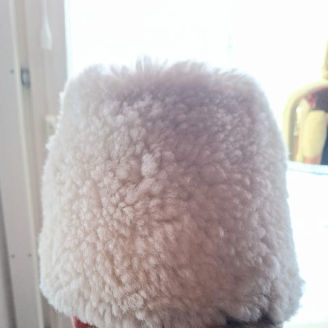 läppäosat lammasturkista, säädettävä nahkapäällysteinen metallinen pantaosa, väri tumma suklaa, lähes käyttämättömät, kunto uutta vastaava, h. 48,-